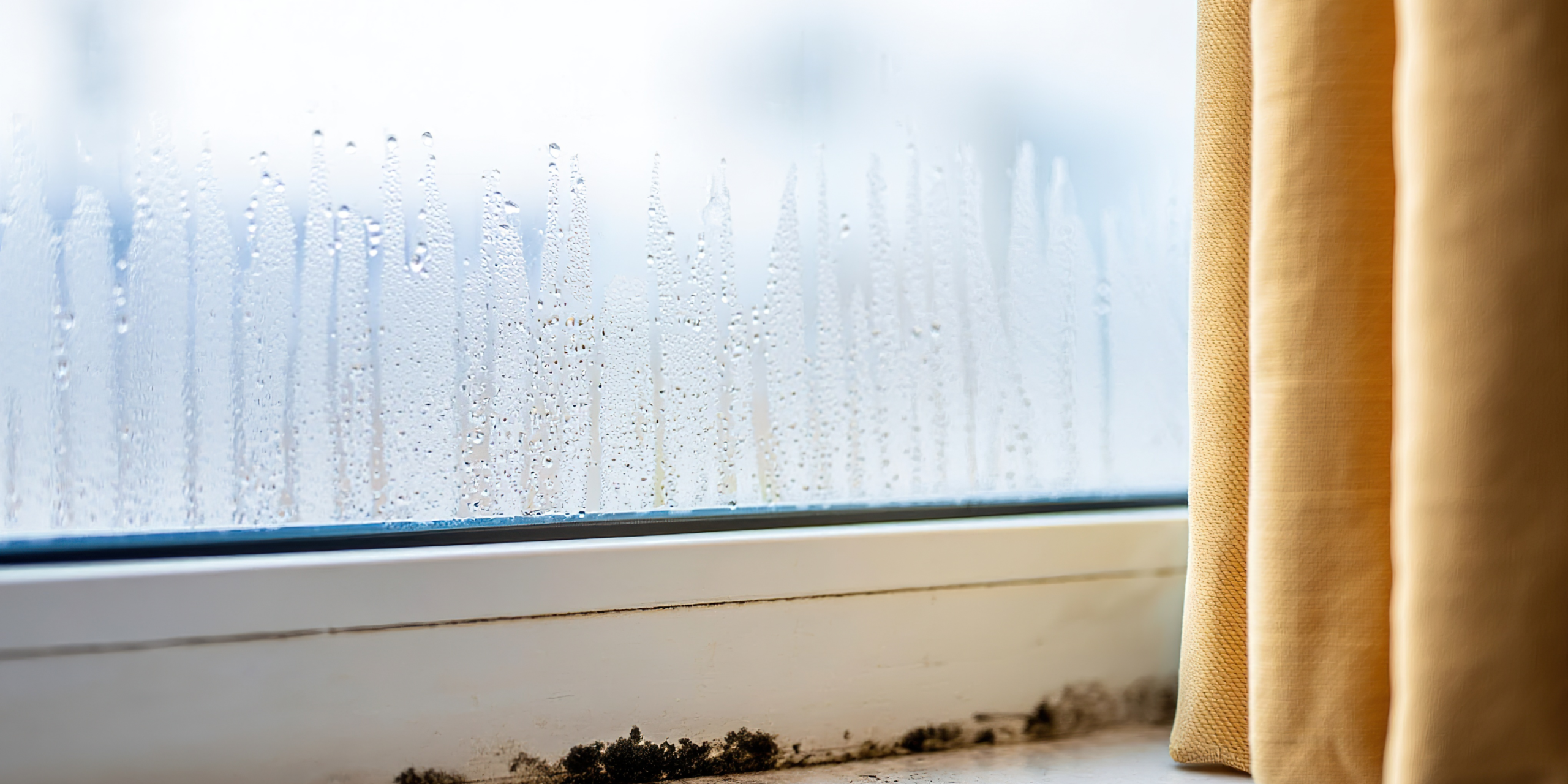 When warm air hits cold glass, water forms. This is called condensation. Mold can grow on the window frame or sill. -